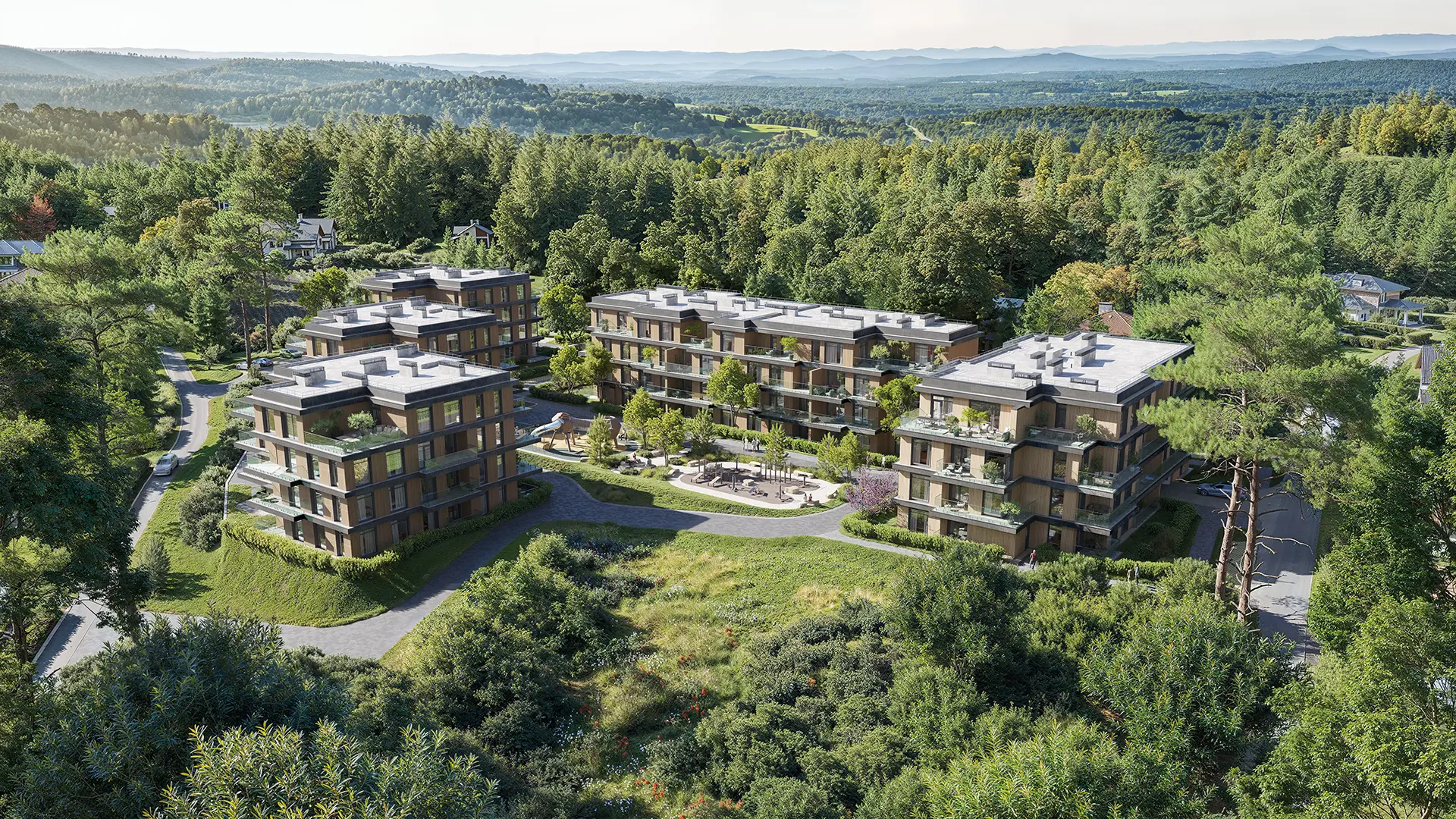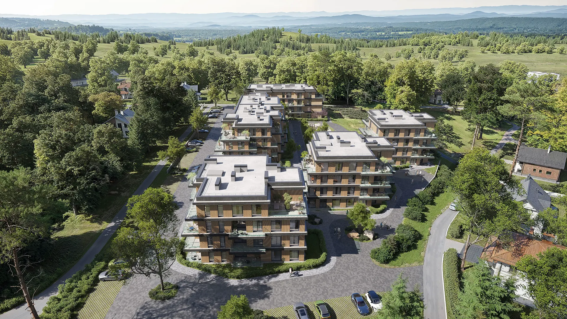AURA – це житловий комплекс бізнес-класу в мальовничій частині Ужгорода з панорамними краєвидами. Він створений для тих, хто шукає баланс між усамітненням в оточенні природи й активним міським життям. Концепція проєкту передбачає формат «для вузького кола»: обмежена кількість квартир, відсутність візуального шуму й архітектура, що гармонійно інтегрована у природний ландшафт.